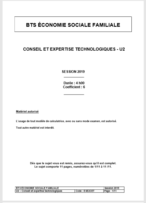- Sujet 2019 - Métropole- CONSEIL ET EXPERTISE TECHNOLOGIQUES - U2 :