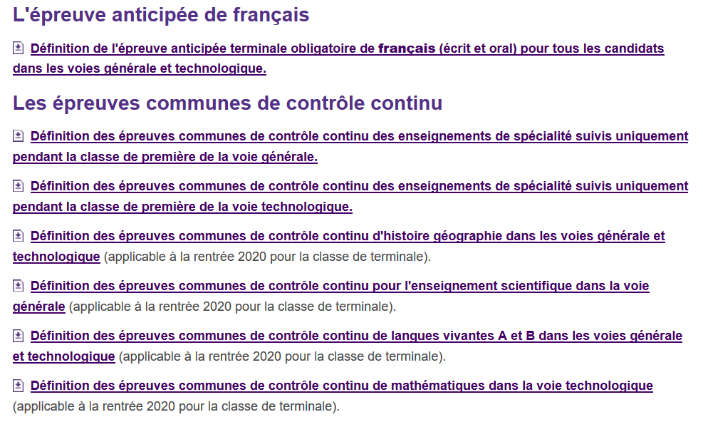 Bulletin Officiel du jeudi 25 avril 2019 : http://eduscol.education.fr/cid140706/bac-2021-les-definitions-d-epreuves-pour-l-annee-scolaire-2019-2020.html