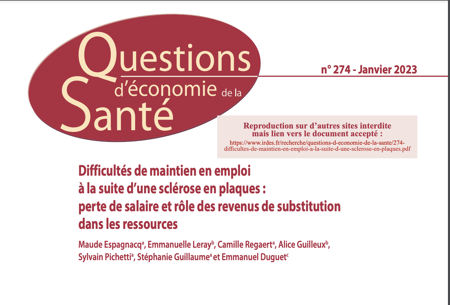 Difficultés de maintien en emploi à la suite d’une sclérose en plaques : perte de salaire et rôle des revenus de substitution dans les ressources