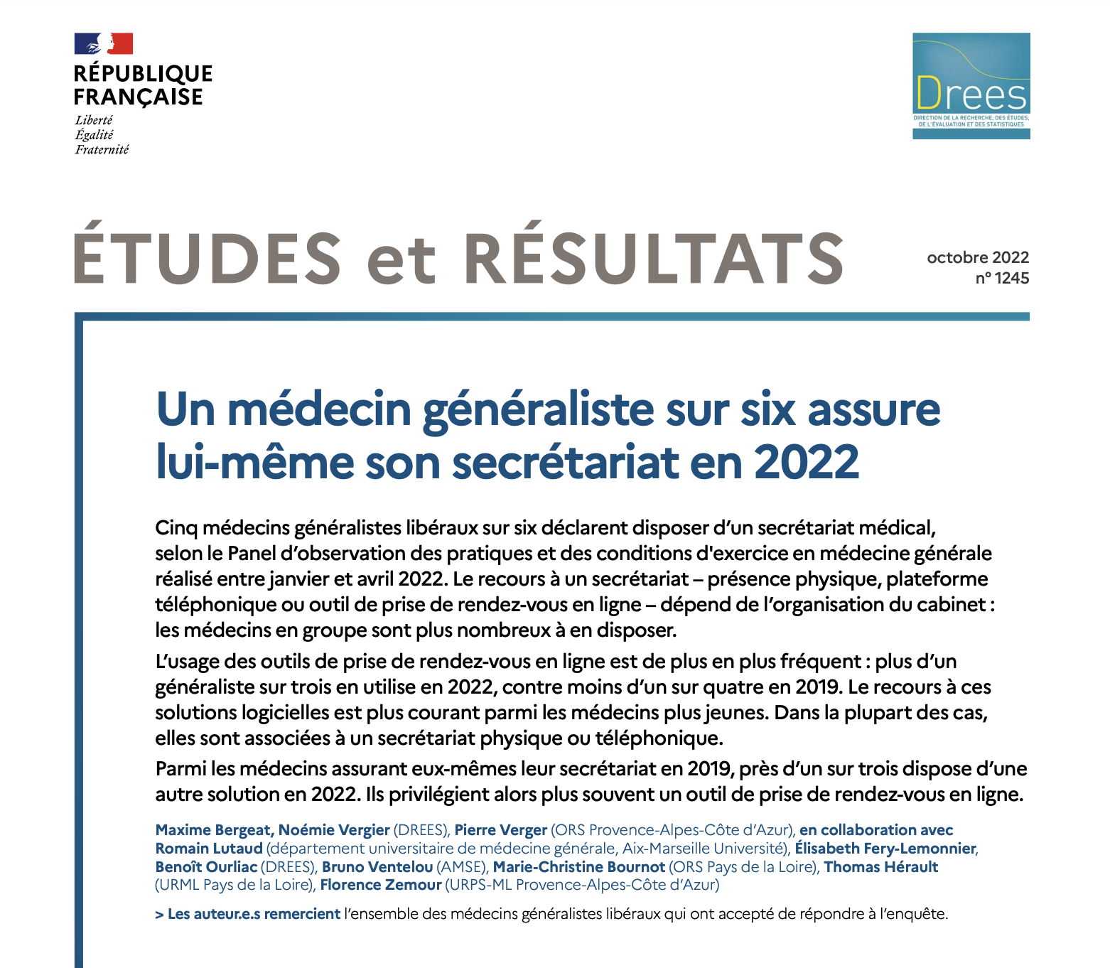 Un médecin généraliste sur six assure lui-même son secrétariat en 2022