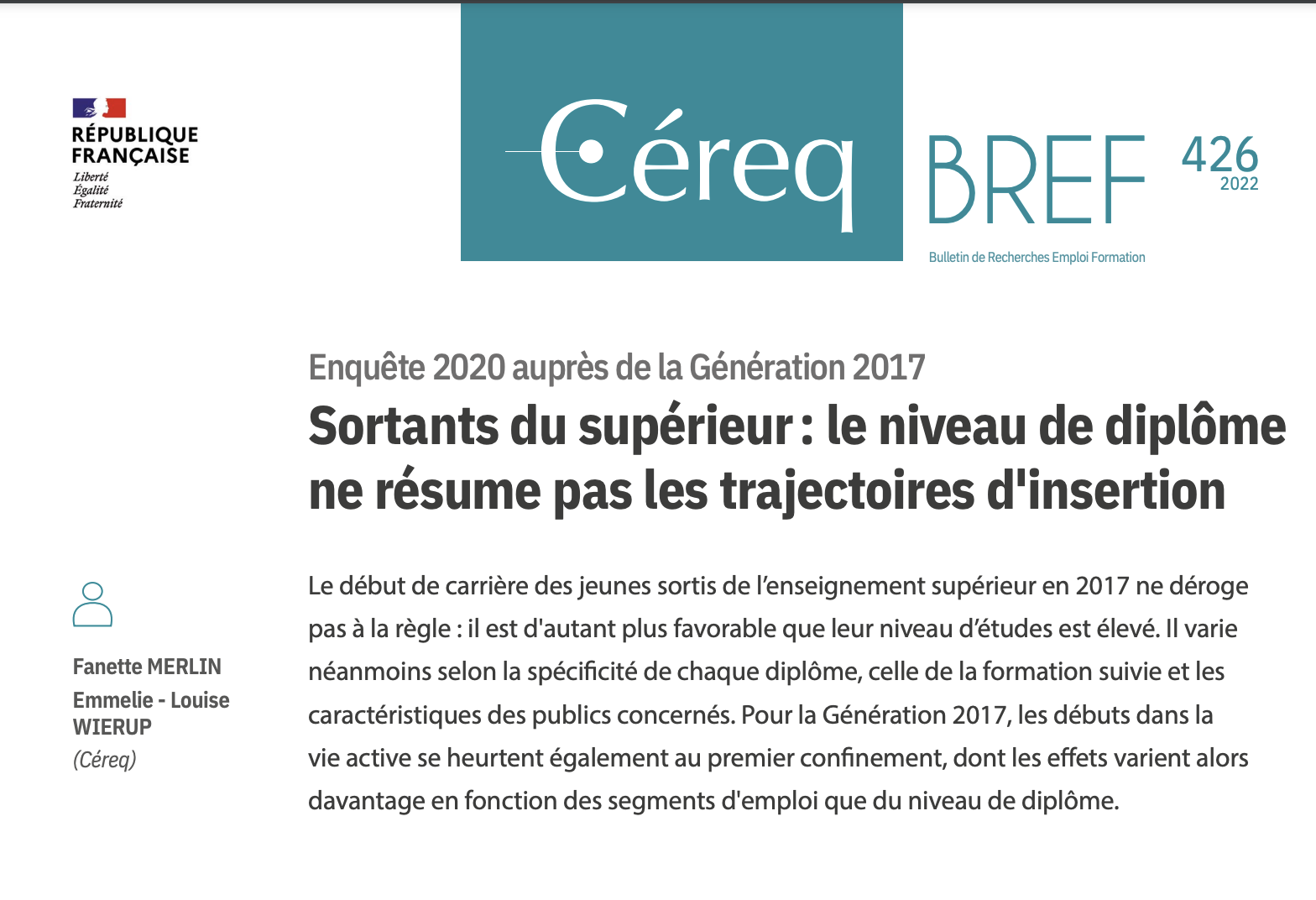 Le début de carrière des jeunes sortis de l’enseignement supérieur en 2017 ne déroge pas à la règle (...)