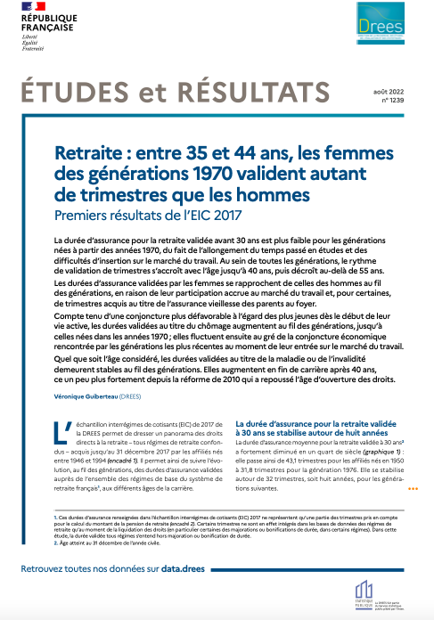 Retraite : entre 35 et 44 ans, les femmes des générations 1970 valident autant de trimestres que les hommes - Premiers résultats de l’EIC 2017