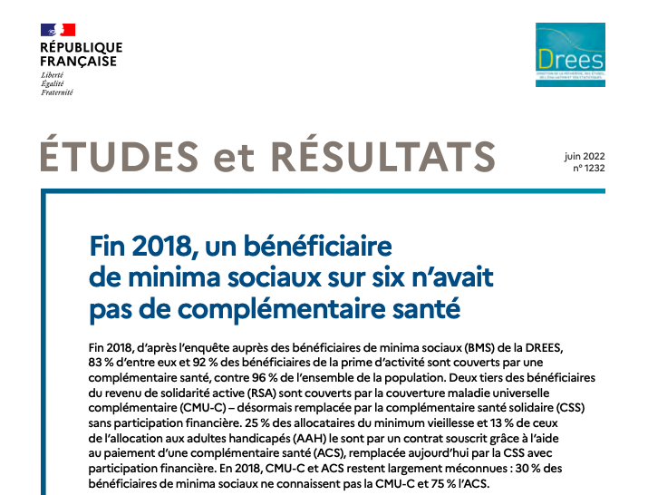 Fin 2018, un bénéficiaire de minima sociaux sur six n’avait pas de complémentaire santé
