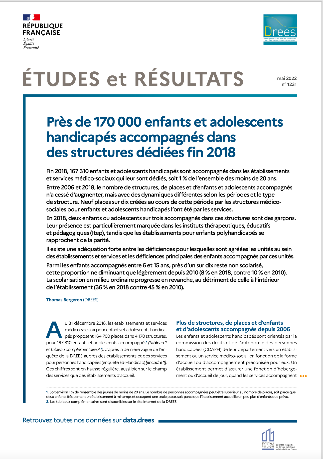 Fin 2018, 167 310 enfants et adolescents handicapés sont accompagnés dans les établissements et (...)