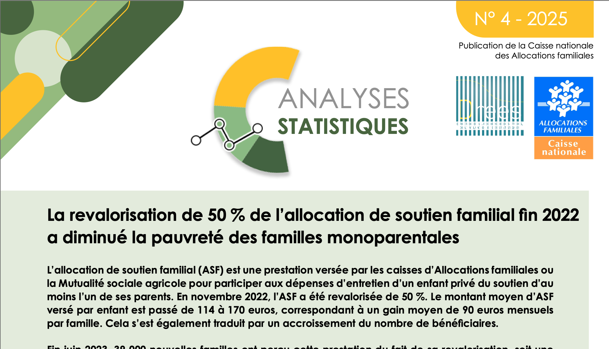 La revalorisation de 50 % de l’allocation de soutien familial fin 2022 a diminué la pauvreté des familles monoparentales