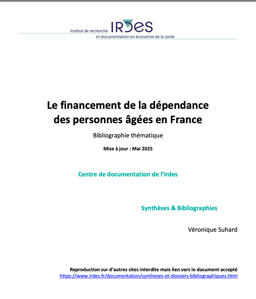 Le financement de la dépendance des personnes âgées en France Bibliographie thématique
