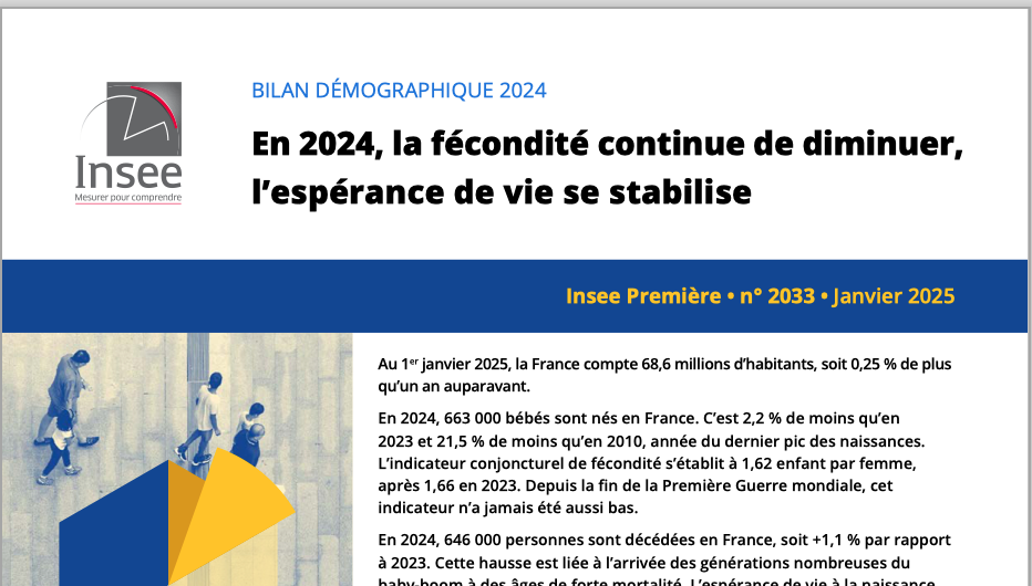 Au 1er janvier 2025, la France compte 68,6 millions d’habitants, soit 0,25 % de plus qu’un an (...)