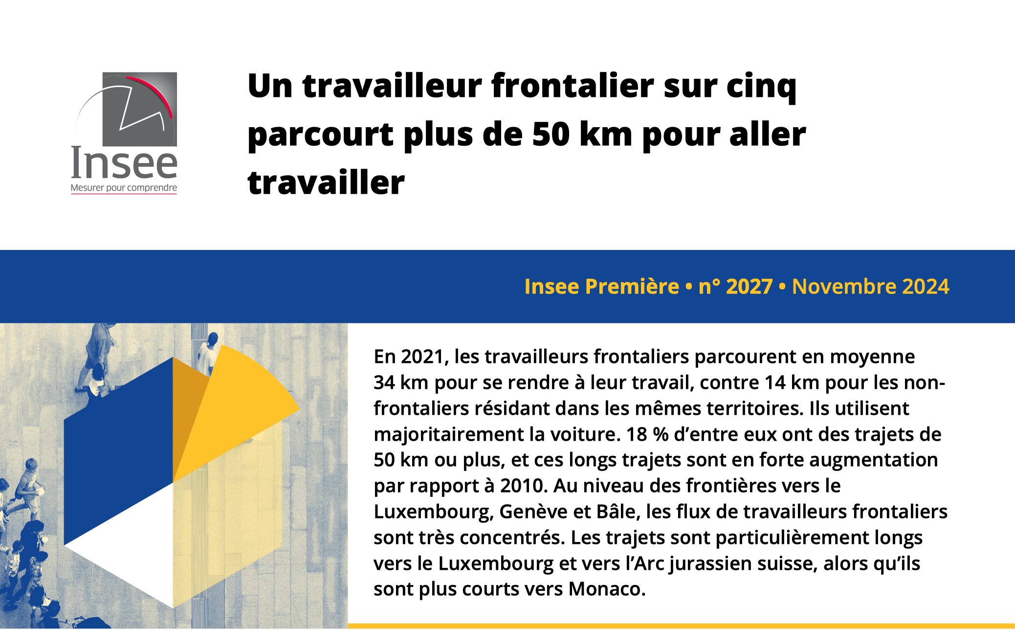 En 2021, les travailleurs frontaliers parcourent en moyenne 34 km pour se rendre à leur travail, (...)
