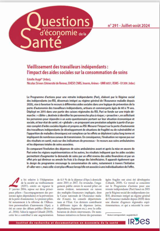 Vieillissement des travailleurs indépendants : l’impact des aides sociales sur la consommation de soins
