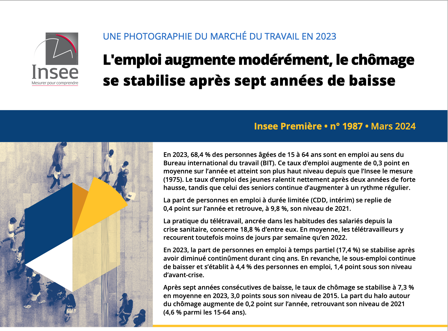 Une photographie du marché du travail en 2023 L’emploi augmente modérément, le chômage se stabilise après sept années de baisse