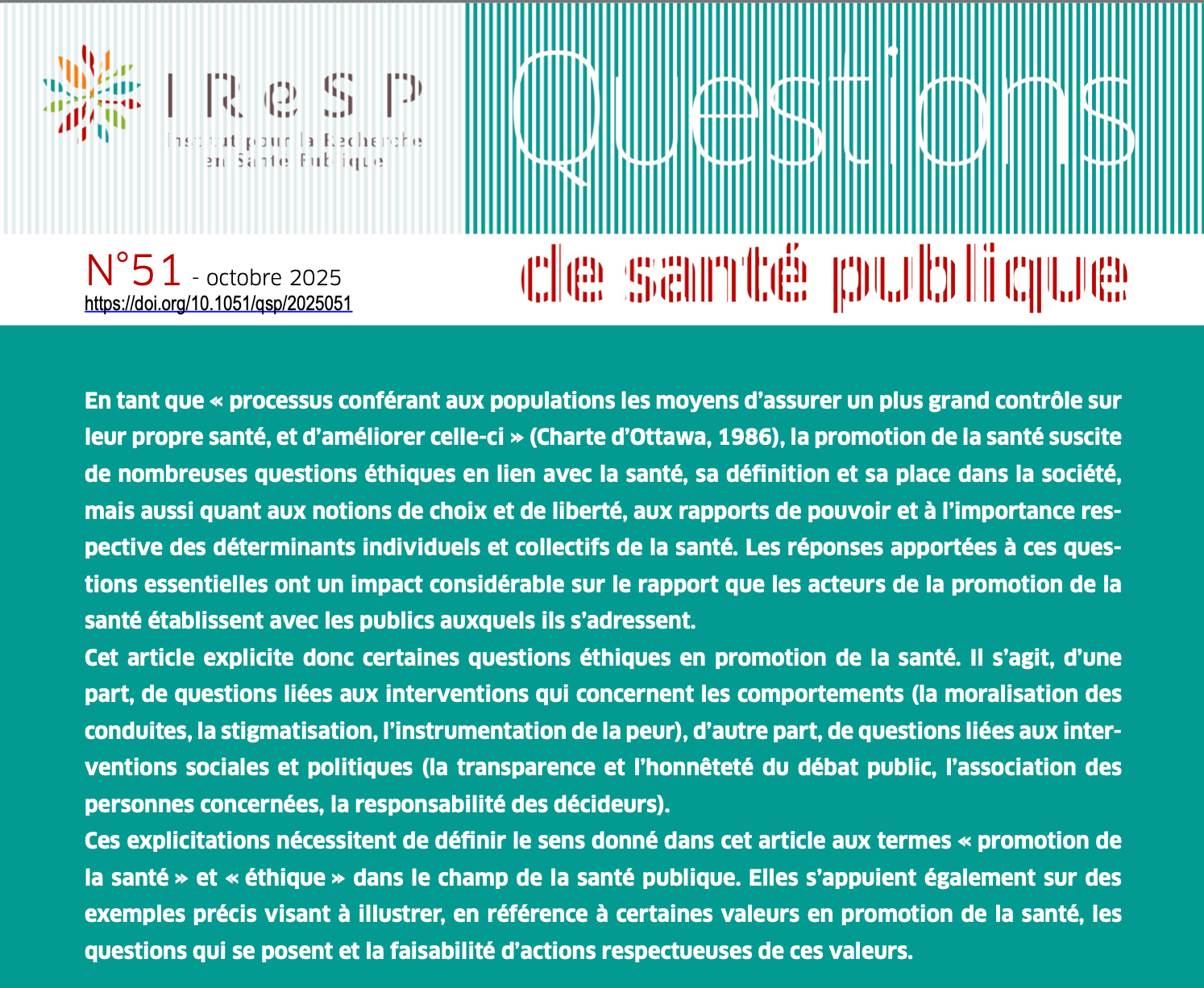 Éthique en promotion de la santé : Comment concilier respect des libertés individuelles et actions (...)