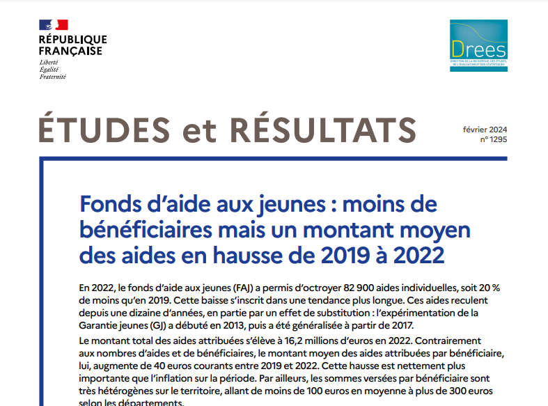 En 2022, le fonds d’aide aux jeunes (FAJ) a permis d’octroyer 82 900 aides individuelles, soit 20 (...)