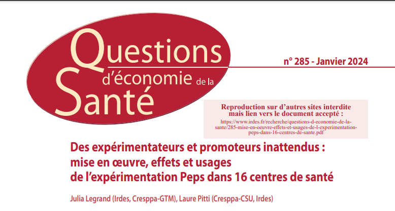 Des expérimentateurs et promoteurs inattendus : mise en œuvre, effets et usages de l’expérimentation Peps dans 16 centres de santé