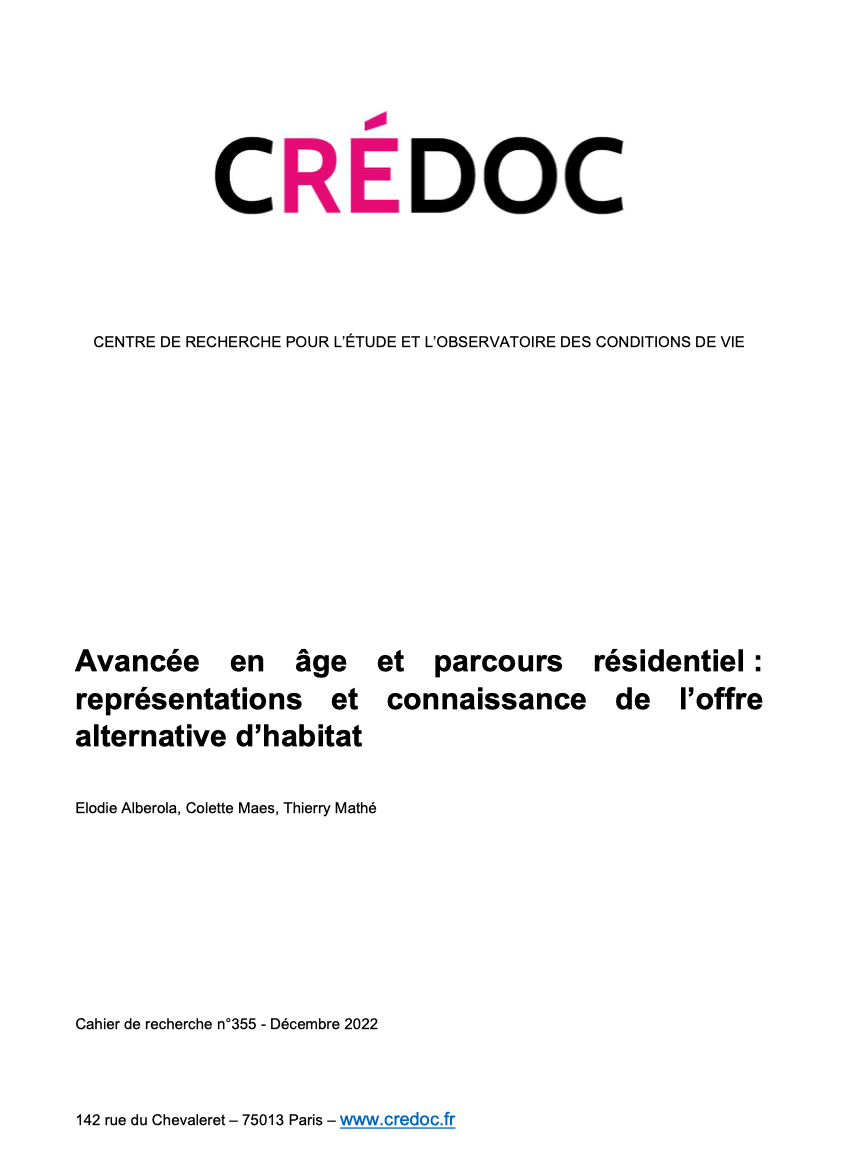 Avancée en âge et parcours résidentiel représentations et connaissances de l’offre alternative d’habitat